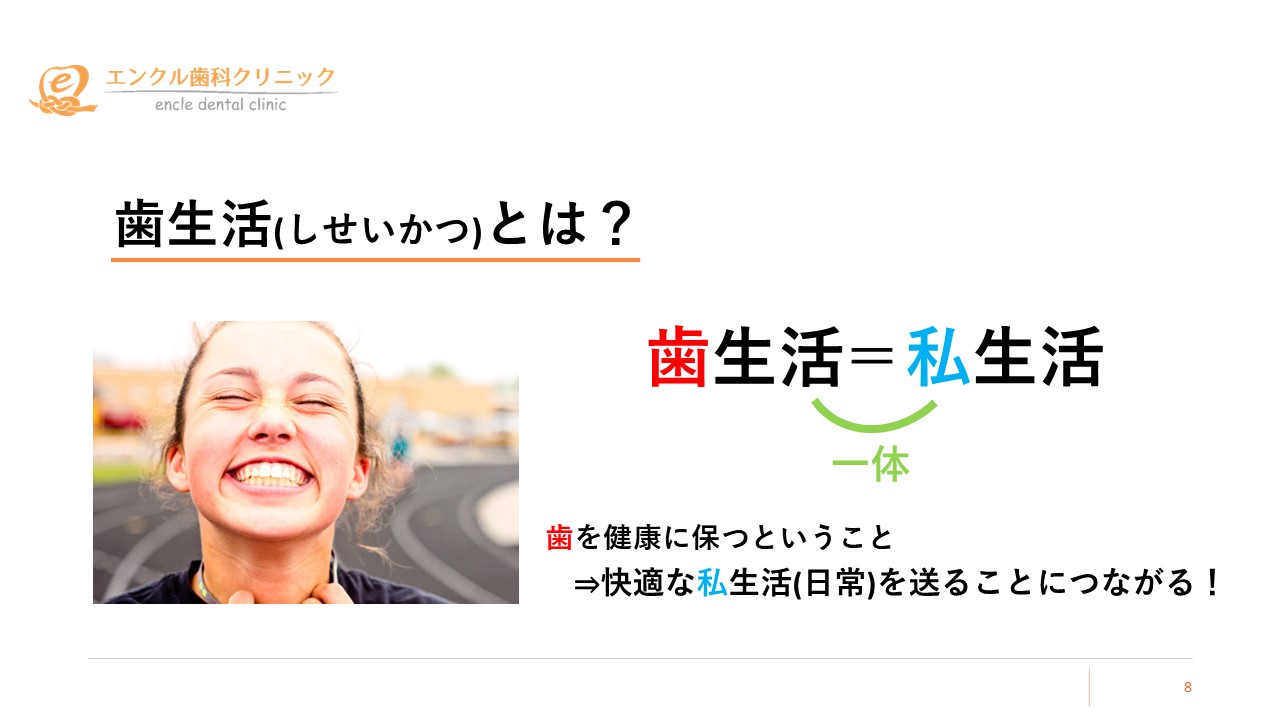 歯を健康に保つということは、快適な私生活(日常)を送ることにつながっておりますので、ぜひ歯の健康を気にしながら生活をしていただけますと幸いです。